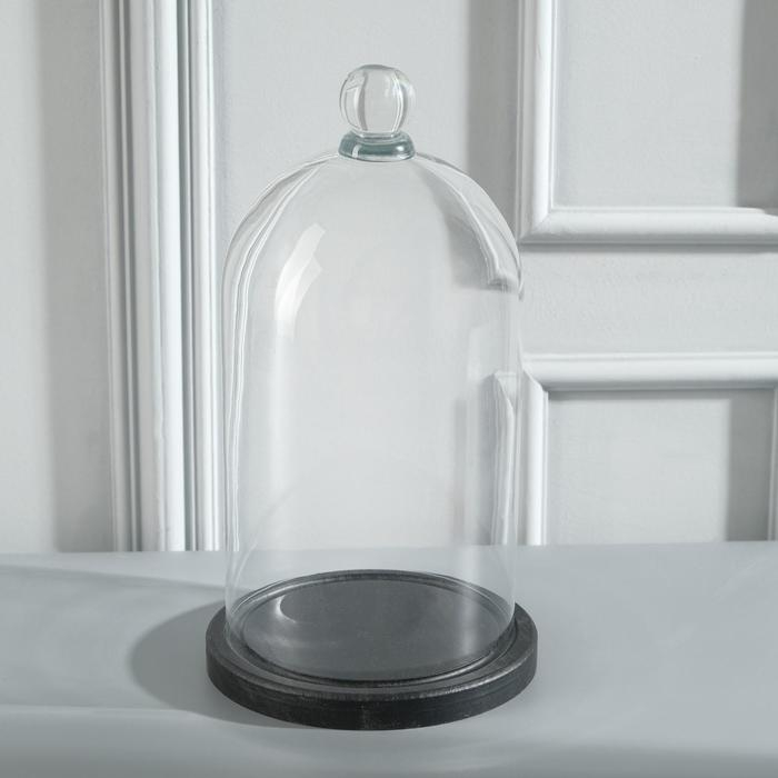 Стеклянный купол-клош на деревянной подставке "Венсан - 1", 25х15 см, белый