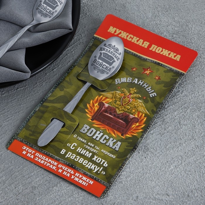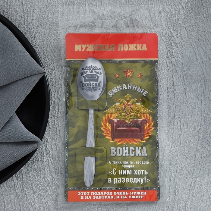 Ложка чайная с гравировкой «Диванные войска», на подарочной открытке, 3 х 14 см.