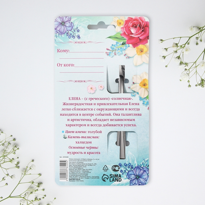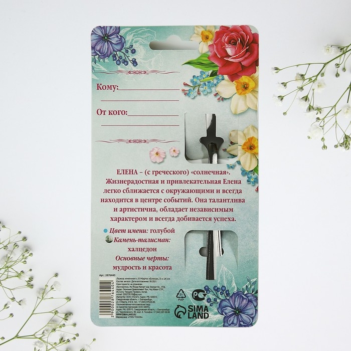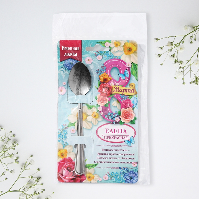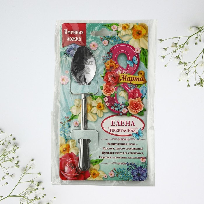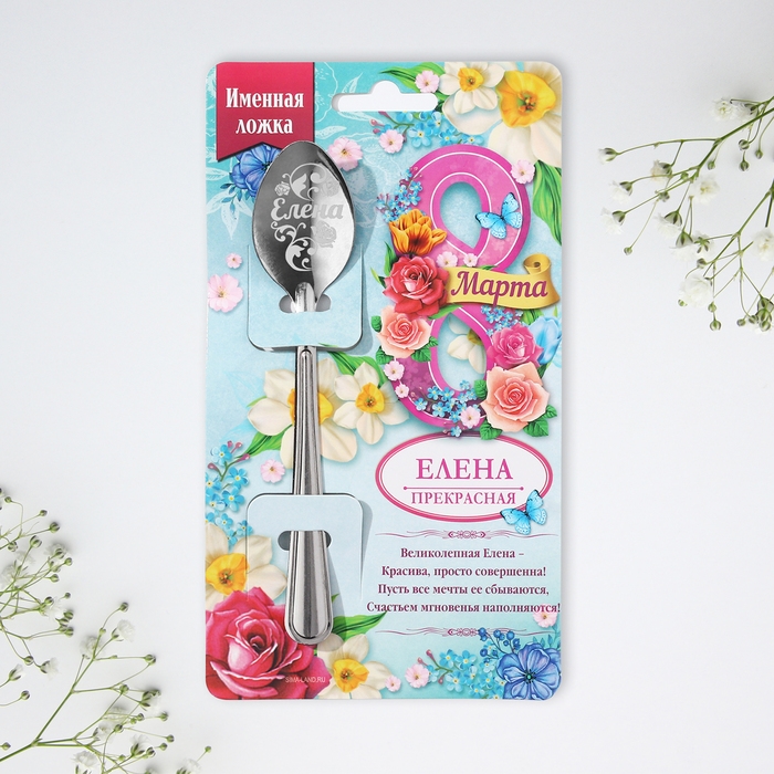 Для особых случаев — особый подарок. Ложка именная с 8 Марта «Елена», 3 х 14 см. может украсить ваше чаепитие, обед или ужин, сделать каждую встречу неповторимой.