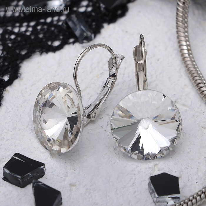 Серьги со стразами «Яркая классика», цвет белый в серебре, d=1,6 см