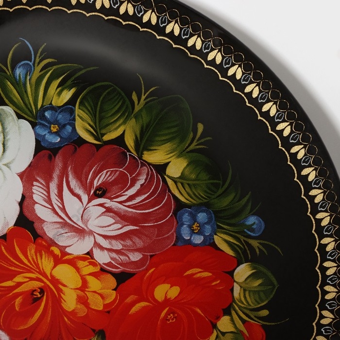 Тарелка выполнена из качественного и прочного стекла, которое не боится высоких температур и механических воздействий.Рисунок на тарелке выполнен в традиционном народном стиле, что придает ей особый шарм и уникальность. Такой дизайн прекрасно подойдет для украшения кухни или столовой, а также станет отличным подарком для близких и друзей.