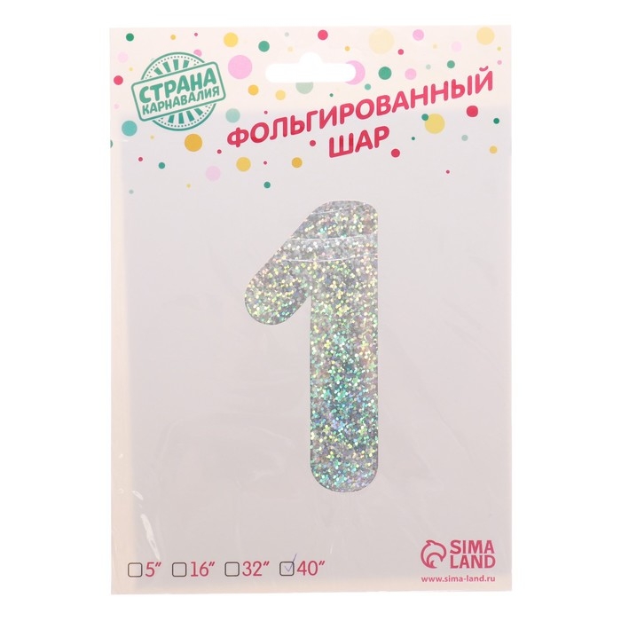 Шар фольгированный 40" «Цифра 1», голография, серебро