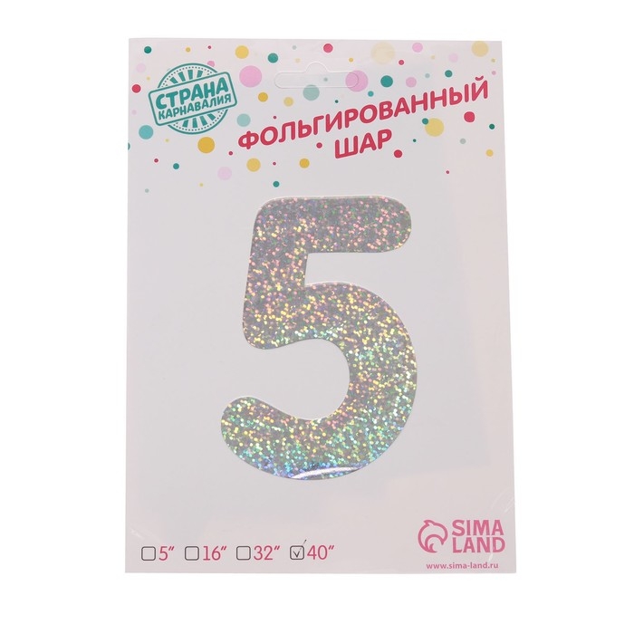 Шар фольгированный 40" «Цифра 5», голография, серебро