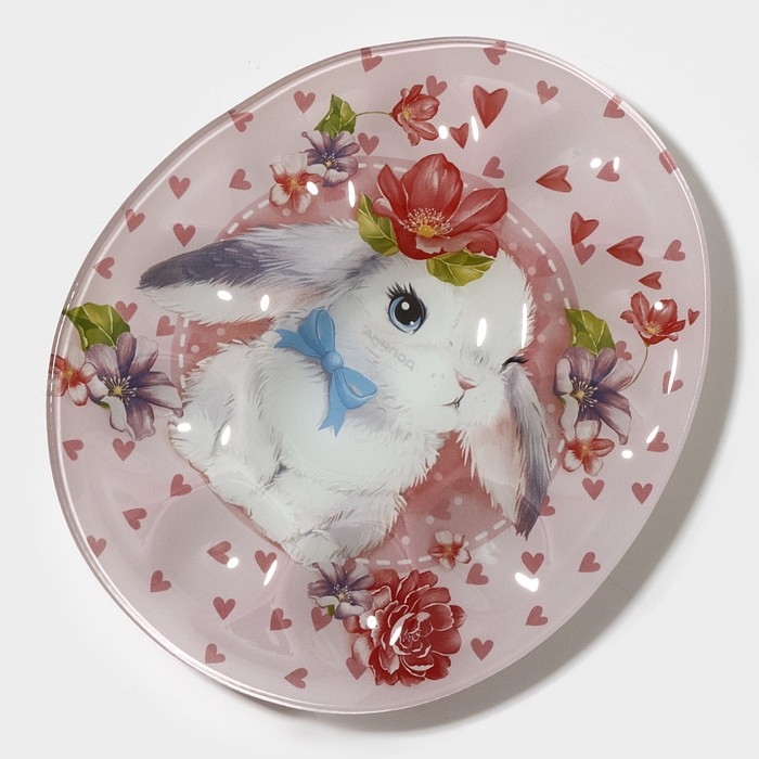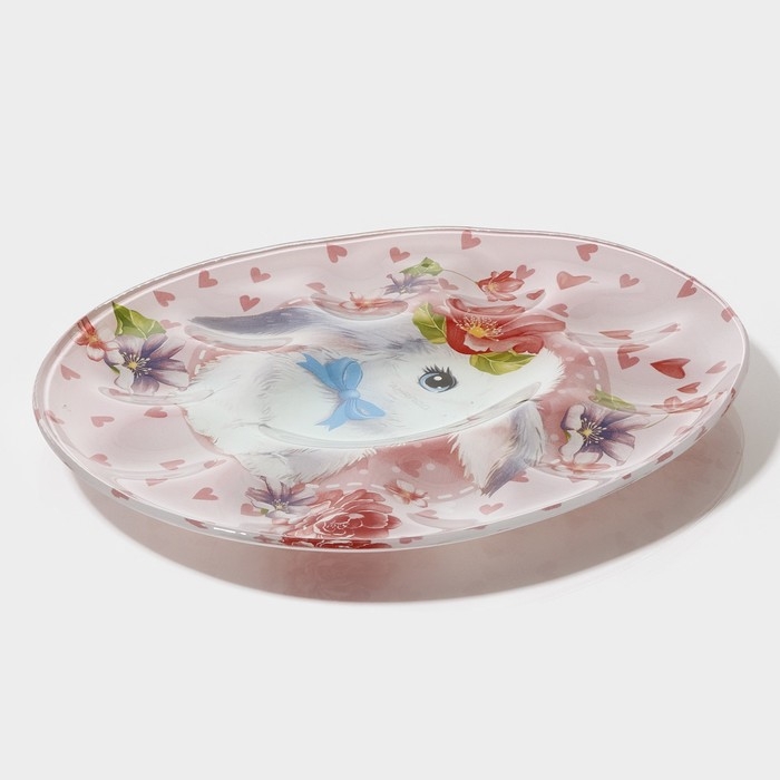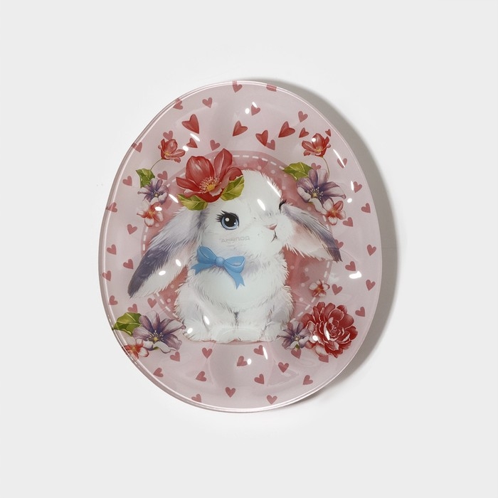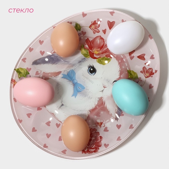 Подставка стеклянная для яиц Доляна «Цветочный зайка», 10 ячеек, 24×20,6 см, цвет розовый