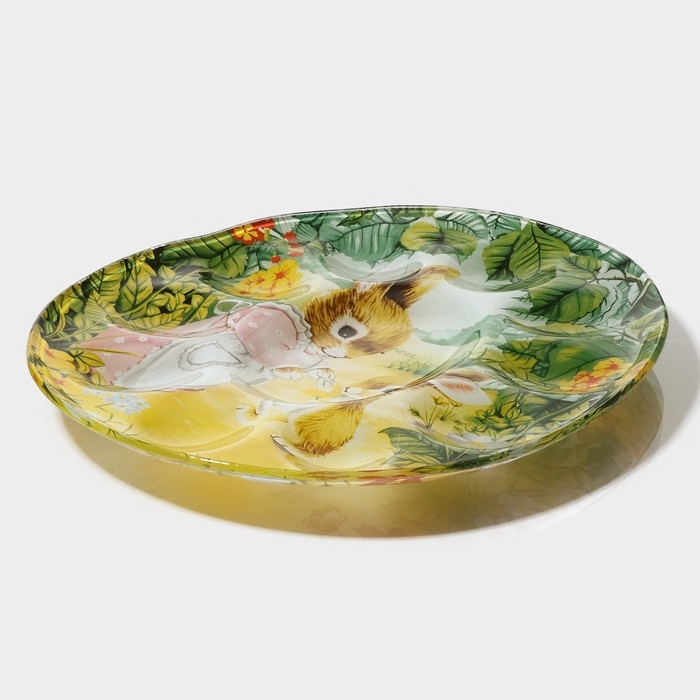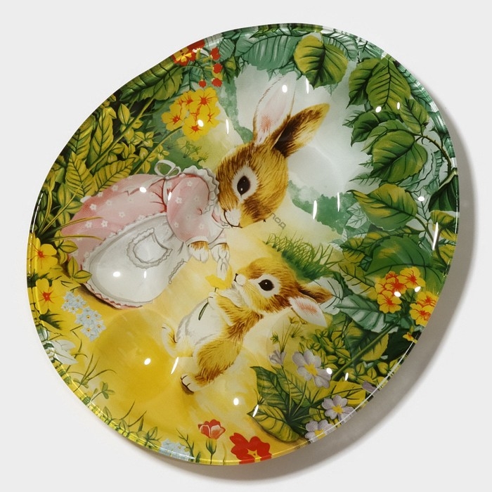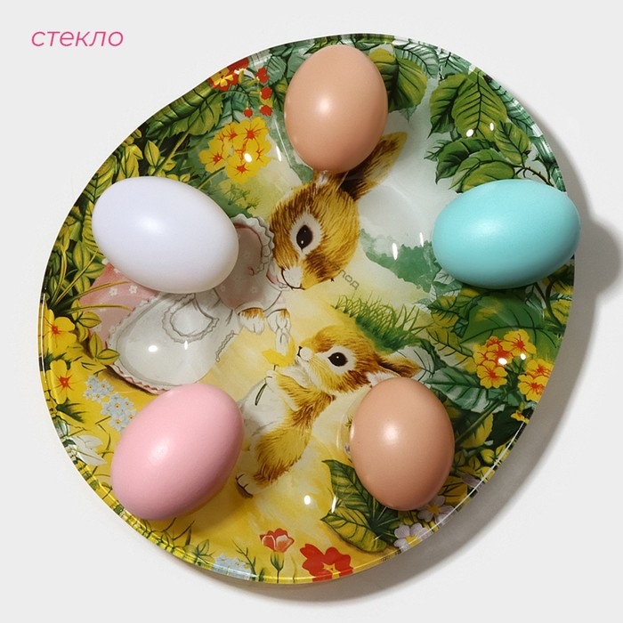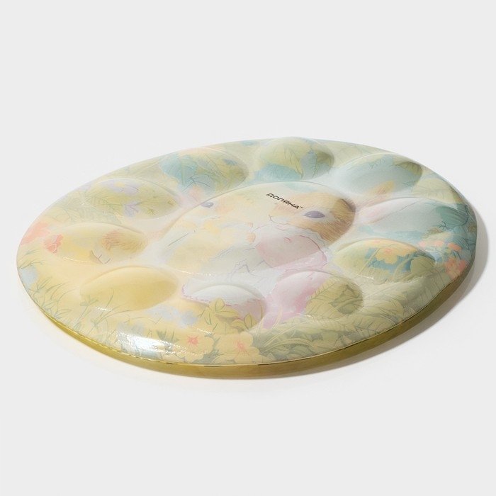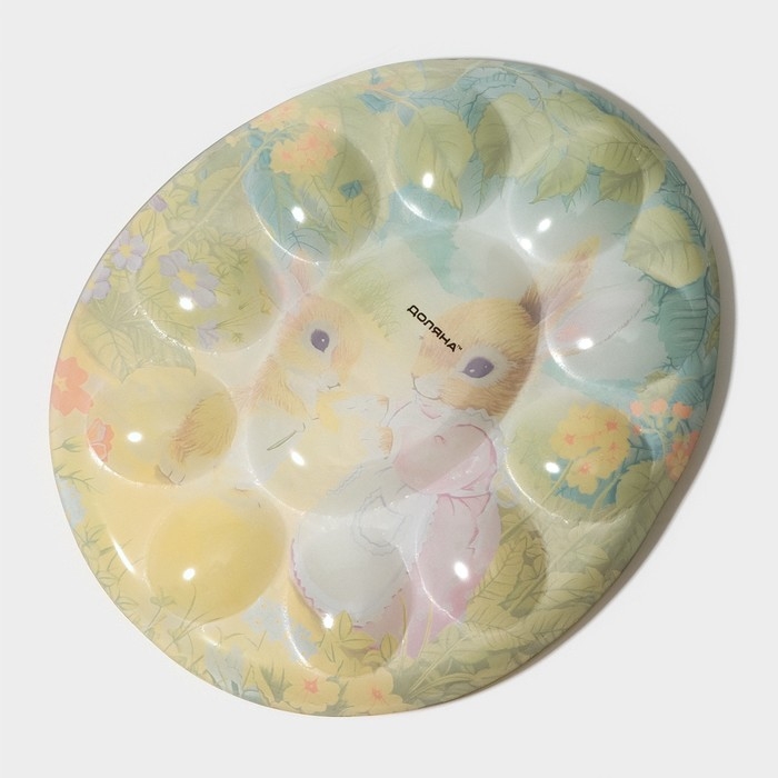 Подставка стеклянная для яиц 10 ячеек Доляна «Кроличьи истории», 24×20,6 см