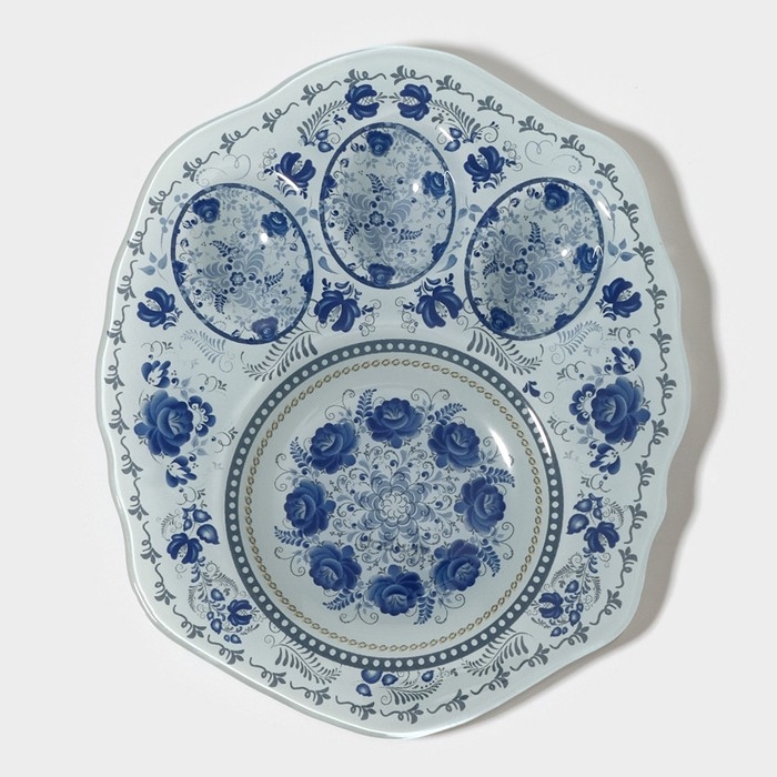 Подставка стеклянная для яиц Доляна «Цветочная роспись», 3 ячейки, 21×18 см, цвет белый