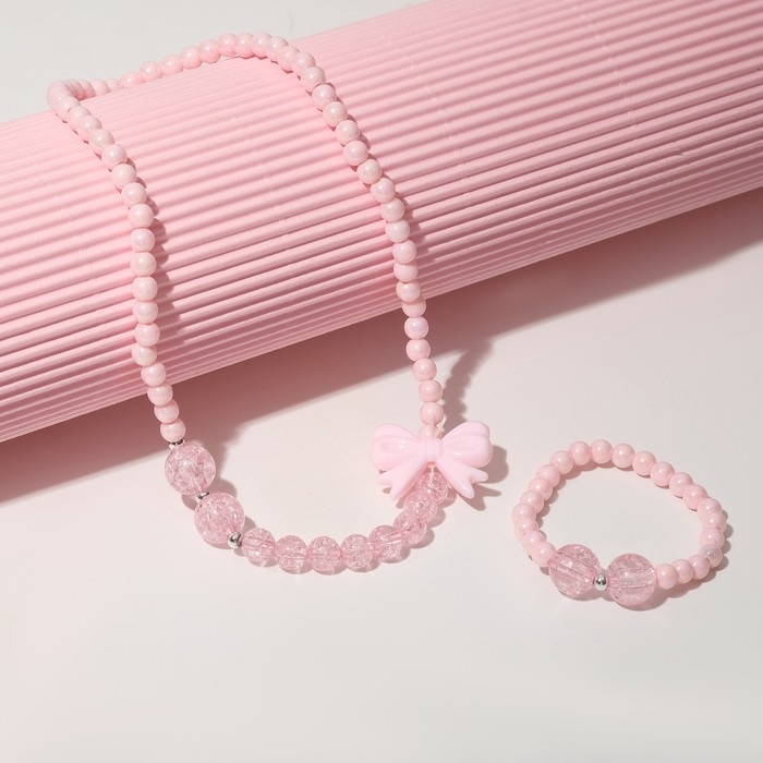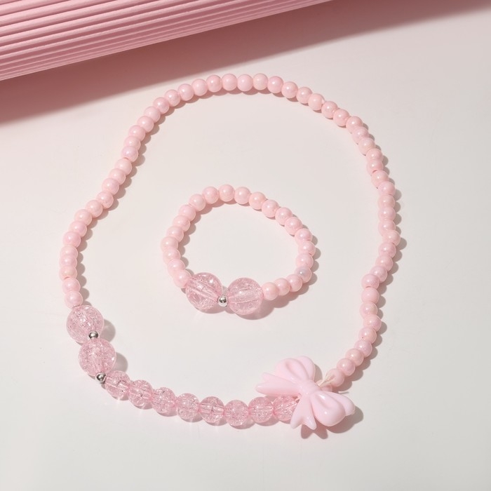 Набор детский «Выбражулька» 2 предмета: бусы, браслет, бантик, цвет розовый