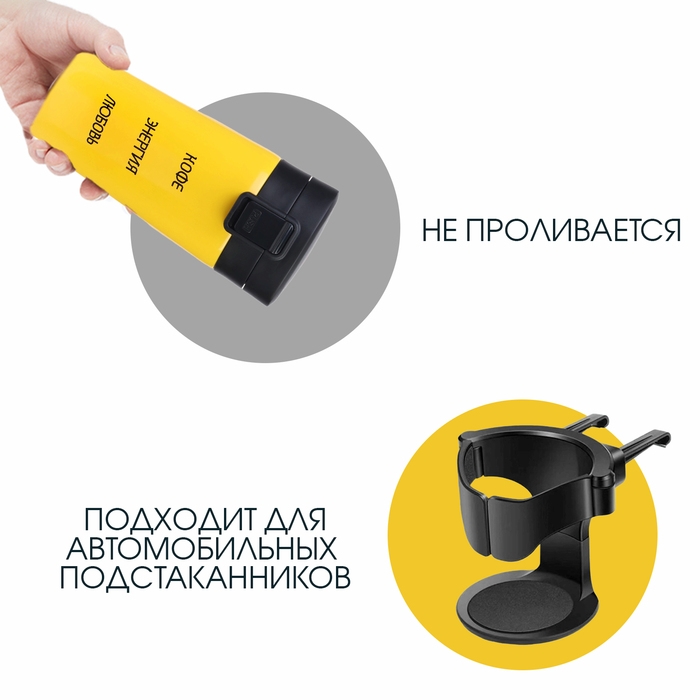 Термокружка, 380 мл, Style "Кофе, энергия, любовь", сохраняет тепло 8 ч, с ситечком