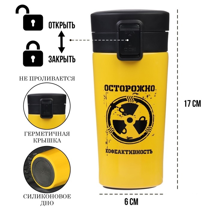 Термокружка, 380 мл, Style "Осторожно кофеактивность", сохраняет тепло 8 ч, с ситечком