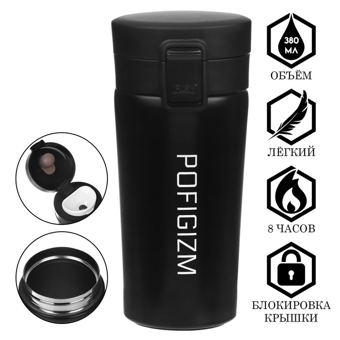 Термокружка объёмом 380 мл, изготовленная из высококачественной нержавеющей стали - Ваш надёжный спутник для поддержания идеальной температуры напитков до 8 часов!