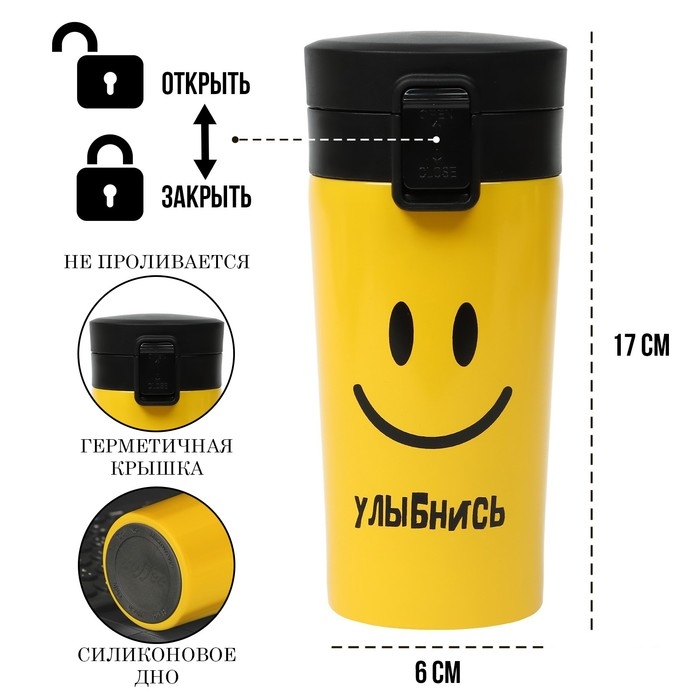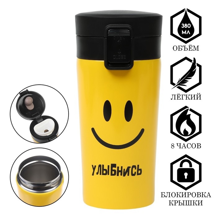 Термокружка, 380 мл, Style "Ну-ка шире улыбнись", сохраняет тепло 8 ч, с ситечком