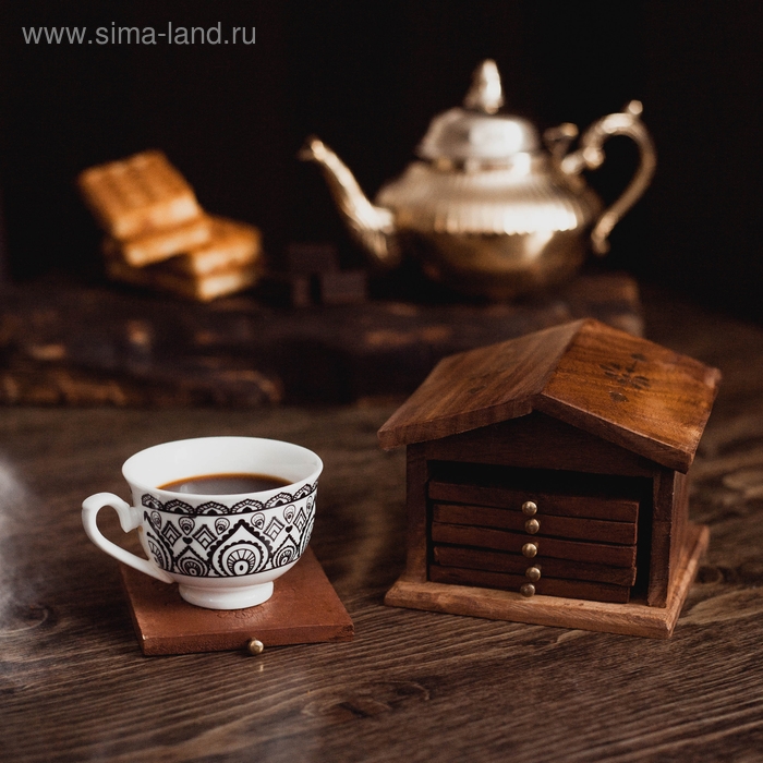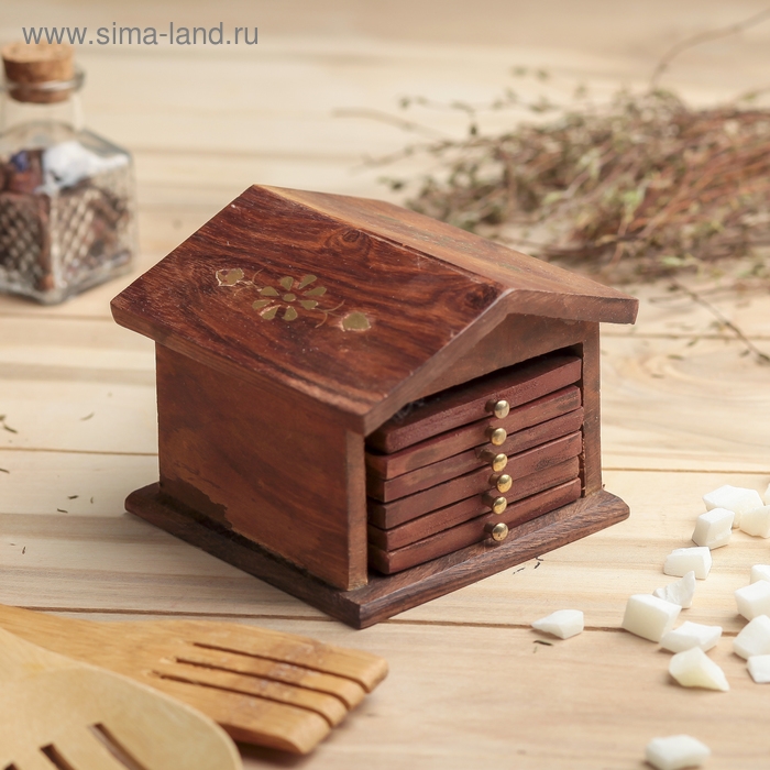 Подставка под горячее "Домик" дерево (набор 6 штук) 8,5х10х10 см