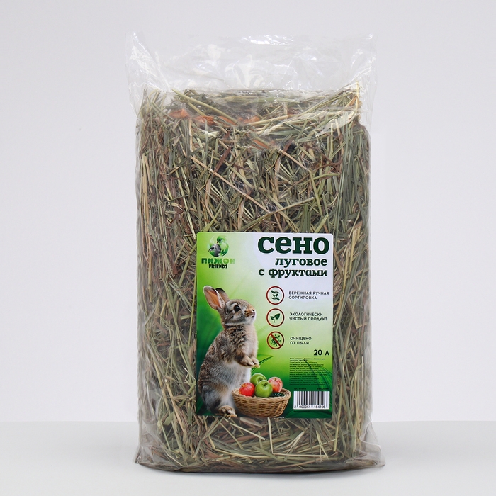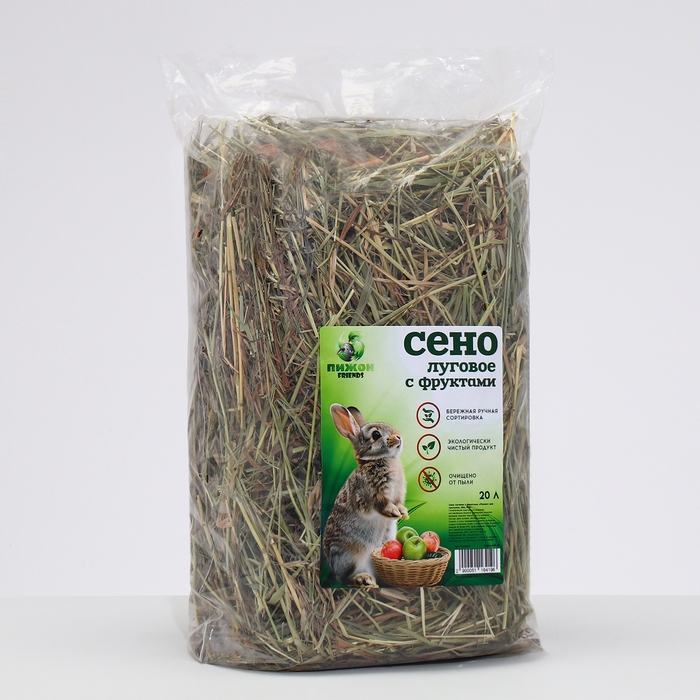 Сено луговое с фруктами «Пижон» для грызунов, 20 л, 500 г