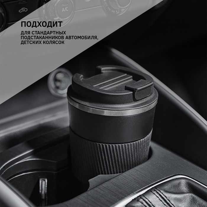 Термокружка для кофе и чая "Мастер К" идеальна для офиса, автомобиля, длительных прогулок и детям в школу. Термос-кружка отлично подходит для автомобильных держателей. Благодаря специальному покрытию и силиконовой вставке, надежно лежит в руке и не выскальзывает.