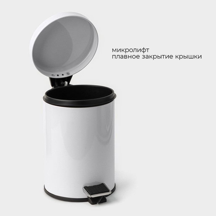 - Компактный размер: объем 3 литра делает ведро идеальным вариантом для небольших пространств, не занимая много места, и в то же время достаточно вместительным для ежедневных отходов.