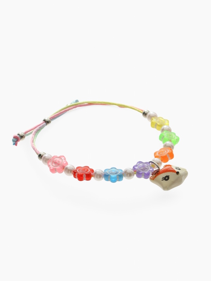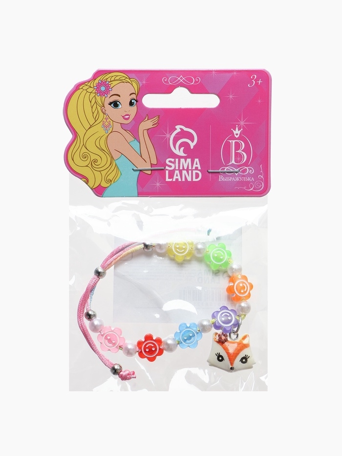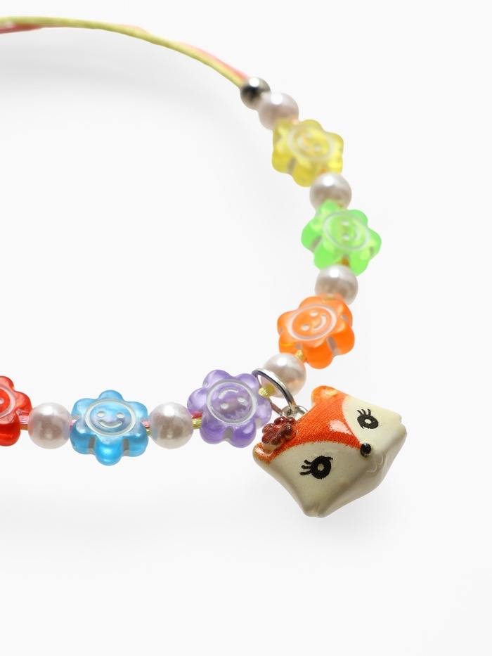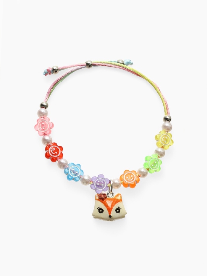 Браслет детский "Выбражулька" на затяжке, лиса с бусинами смайлы, цветной
