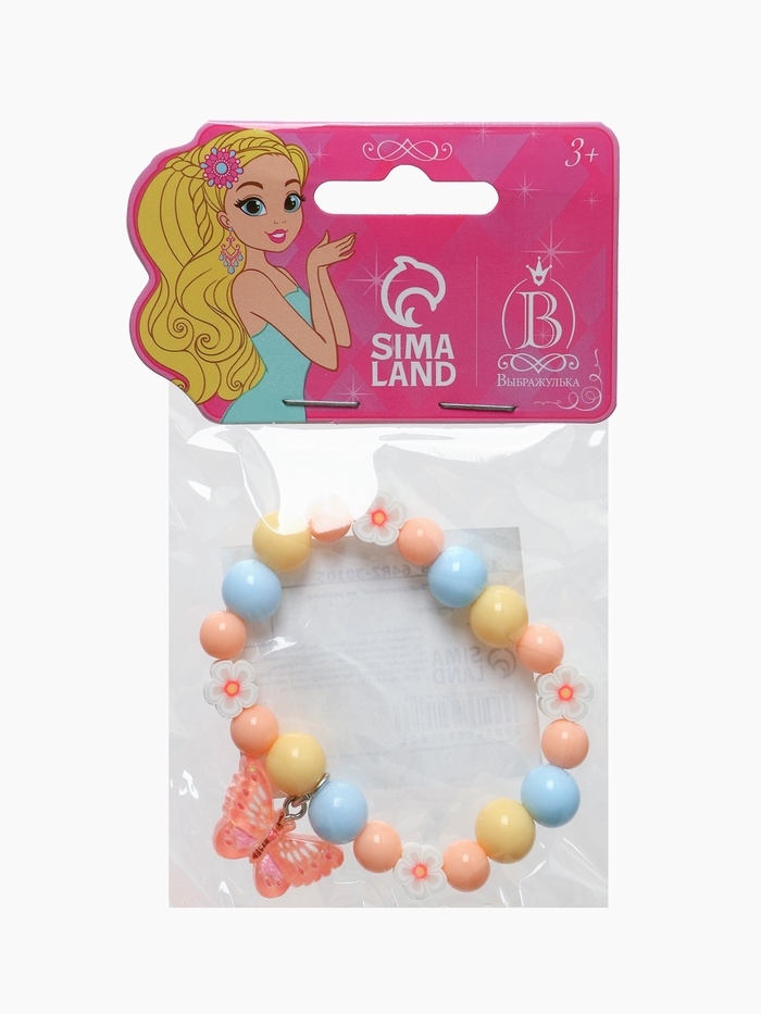 Браслет детский "Выбражулька" фимо с бусинами, бабочка с бусинами, цветной