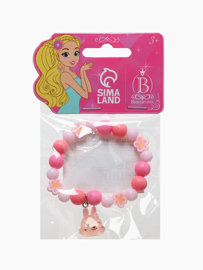 Браслет детский "Выбражулька" фимо с бусинами, зайчик с бусинами, цвет розовый