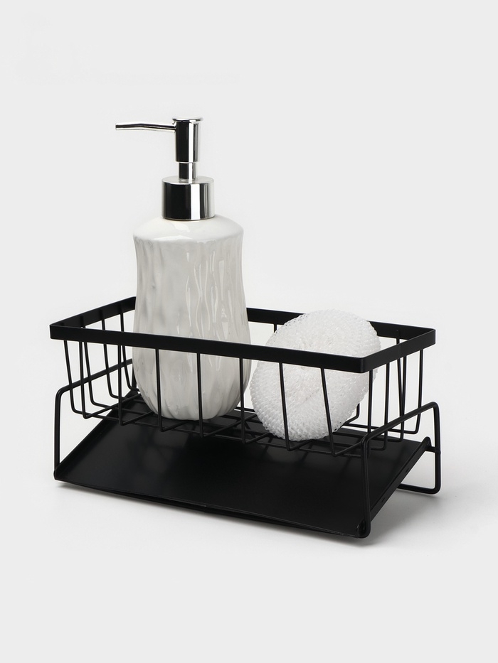 Подставка для мыла и губки со сливом, цвет черный