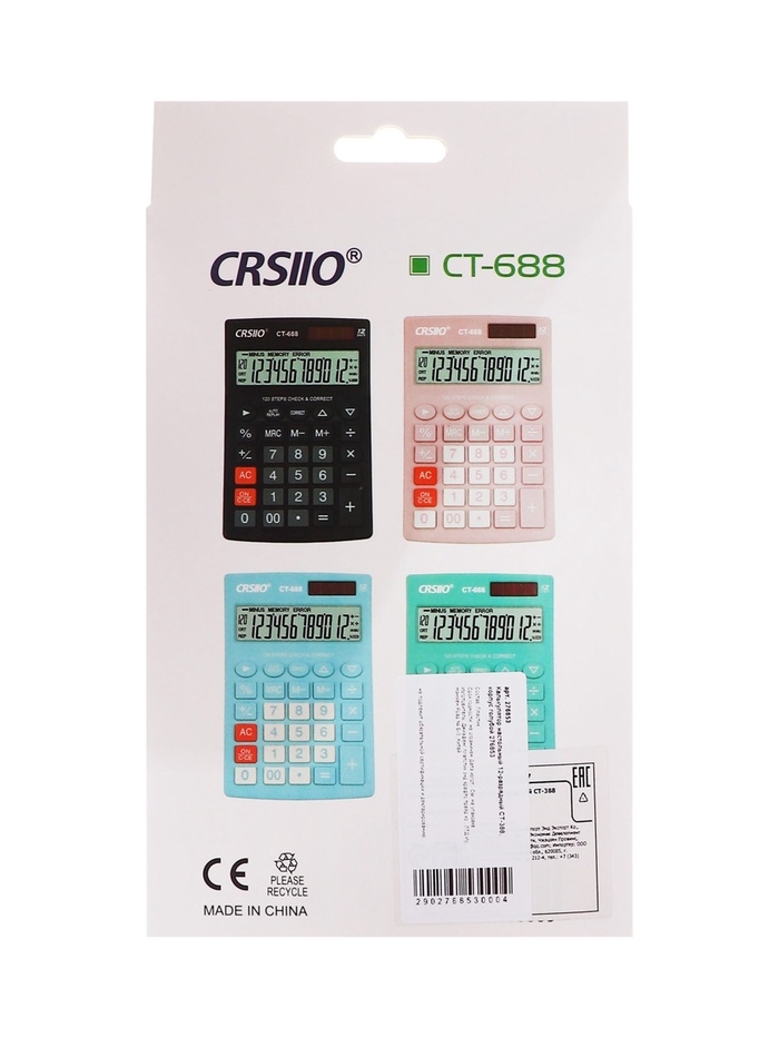 Калькулятор настольный 12-разрядный CT-388, голубой