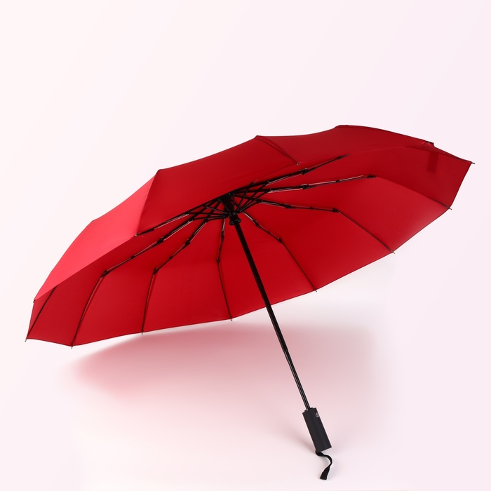 Зонт автоматический «Lanford», 3 сложения, 12 спиц, R = 51/60 см, D = 120 см, цвет красный