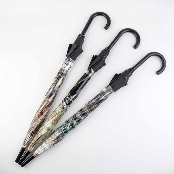 Элегантный зонт - трость сохранит вашу причёску и макияж. Благодаря широкому и прочному куполу он обеспечит наилучшую защиту от непогоды.