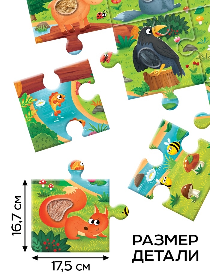 Пазл напольный с тактильными вставками "Лесные зверята"
