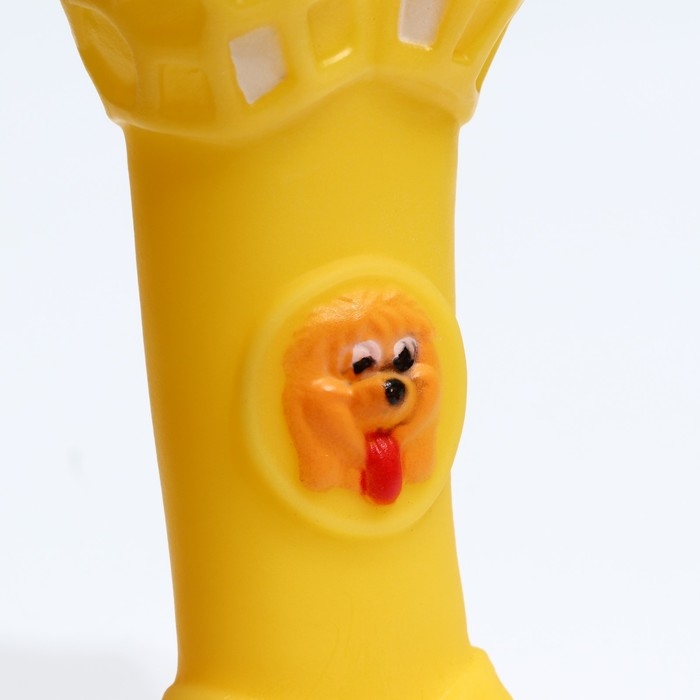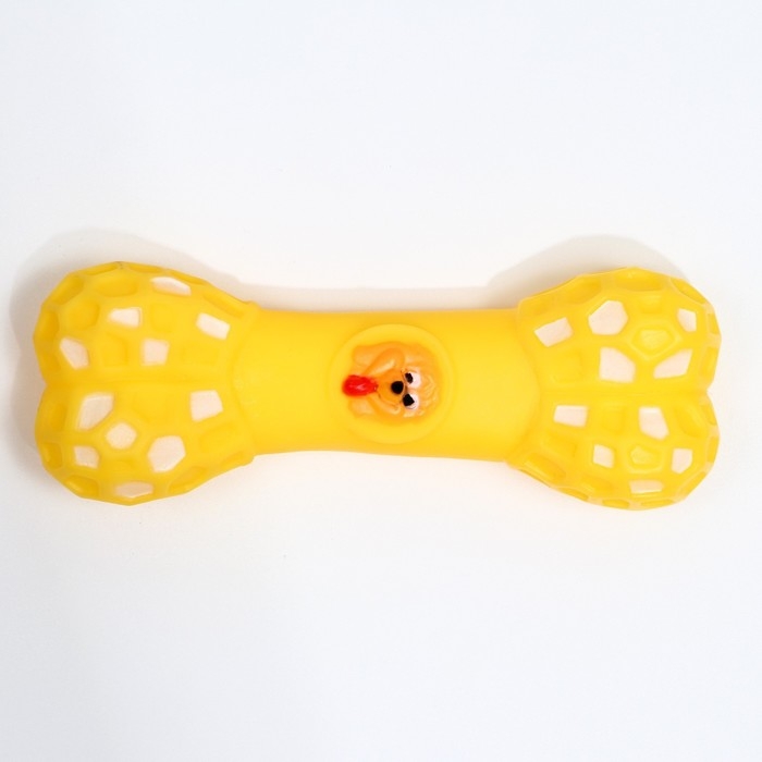 Игрушка пищащая "Кость с портретом" для собак, 15 см, жёлтая