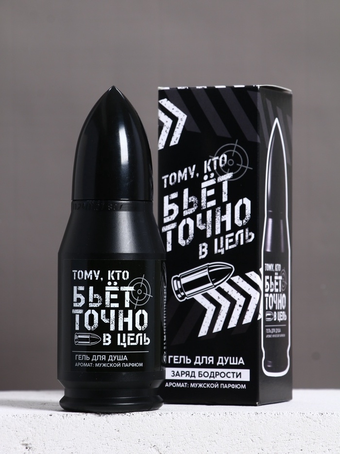 Гель для душа во флаконе пуля в коробке "Тому, кто бьёт в цель", 200 мл, аромат мужской парфюм 107