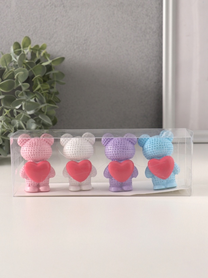 Сувенир полистоун "Вязаный мишка с большим сердцем" набор 4 шт 2,7х4х6 см