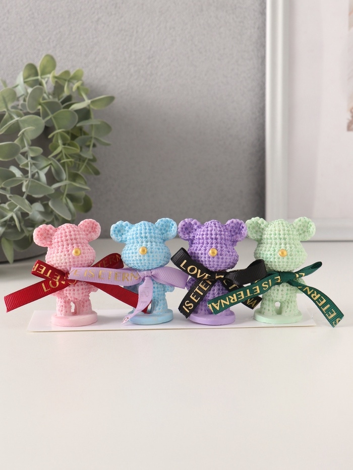 Сувенир полистоун "Вязаный мишка с золотым носиком" набор 4 шт 3х4,2х6,3 см