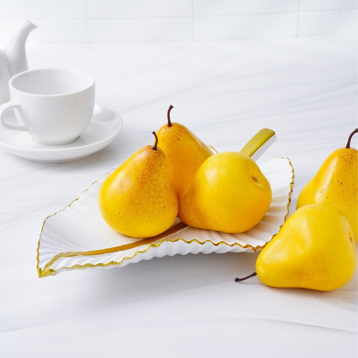 Блюдо для фруктов Доляна «Лист», 35,5×20×5 см, цвет золотой с белым