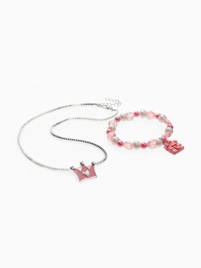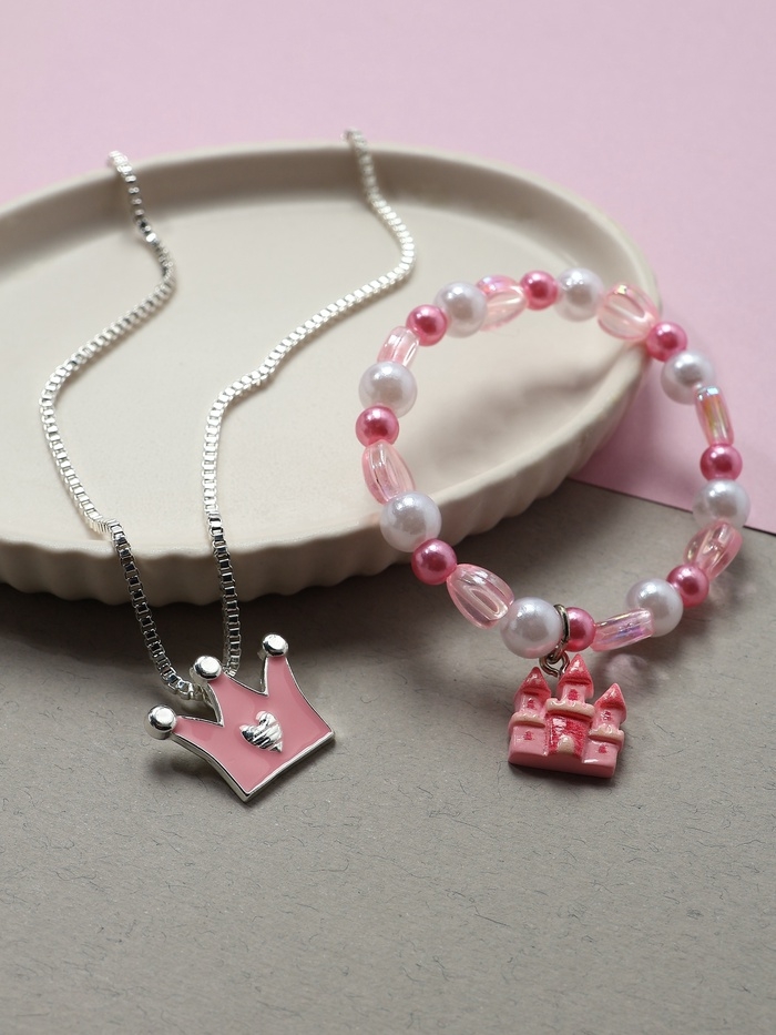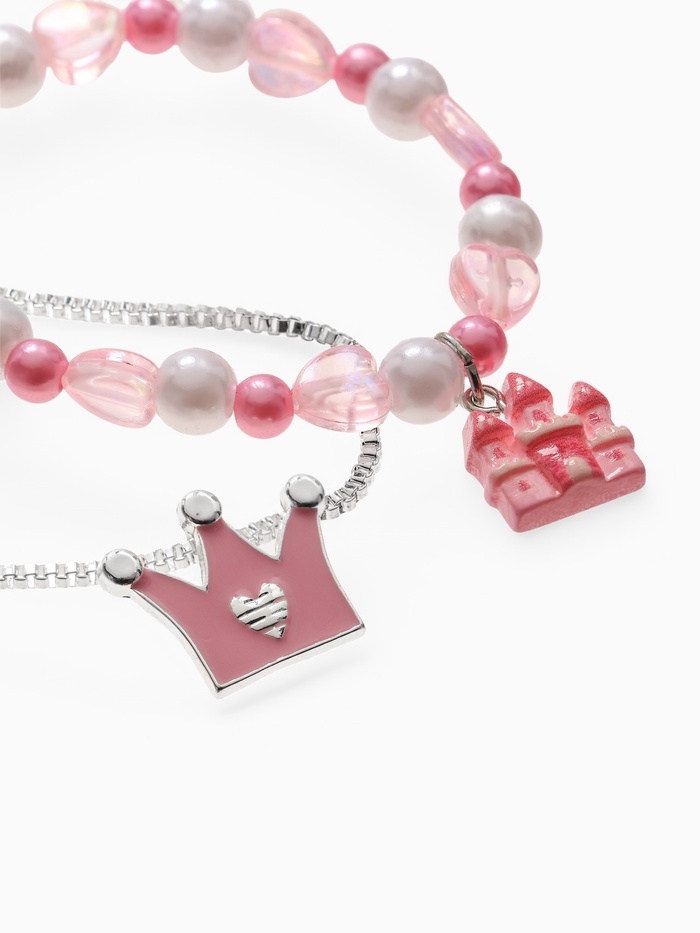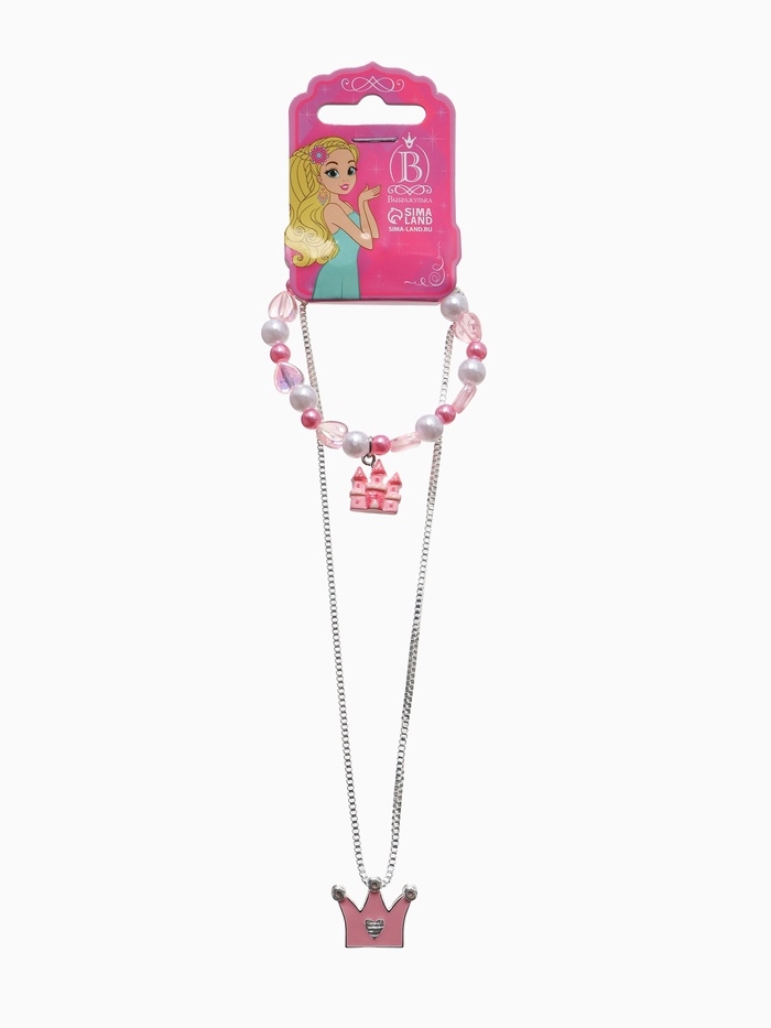 Набор детский "Выбражулька" 2 пр-та: кулон, браслет, корона, замок, цвет бело-розовый