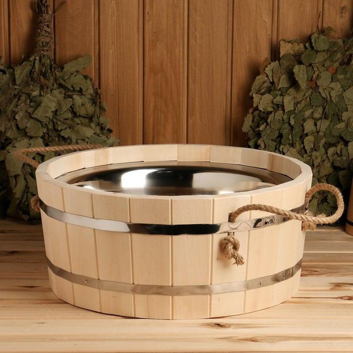 Шайка-таз деревянный, 15 л, с нержавеющей вставкой