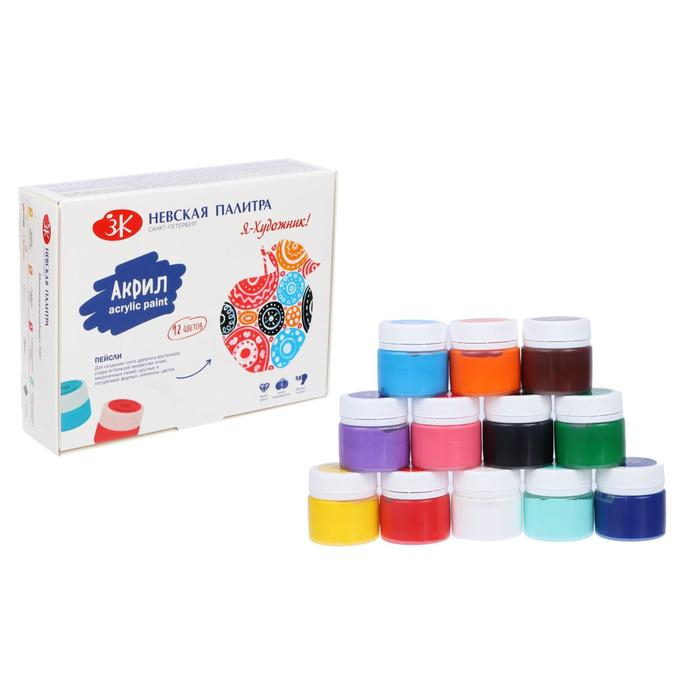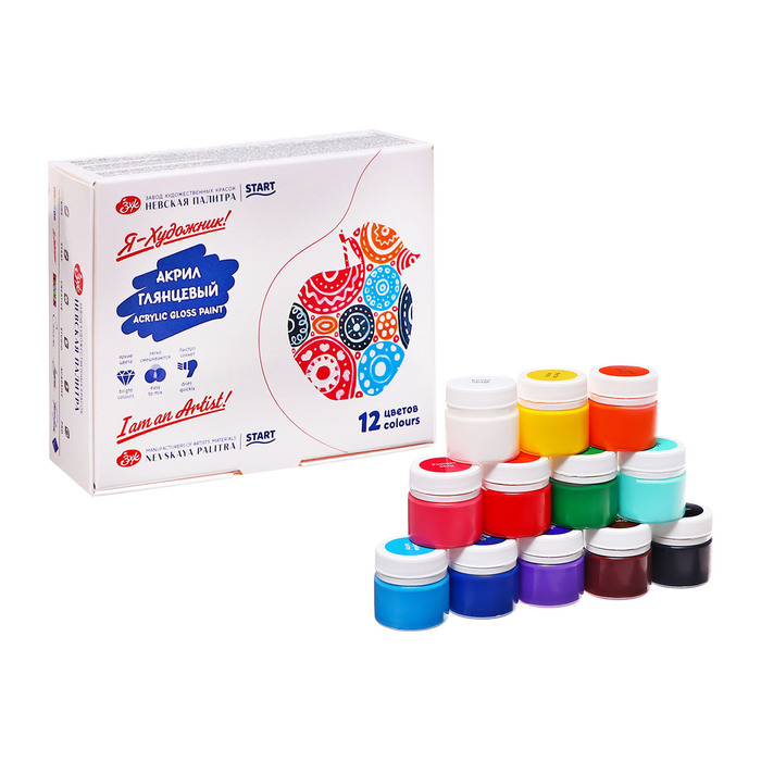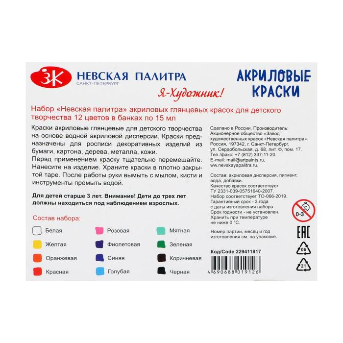 Краска акриловая, набор 12 цветов х 15 мл, "Я - Художник!", глянцевые