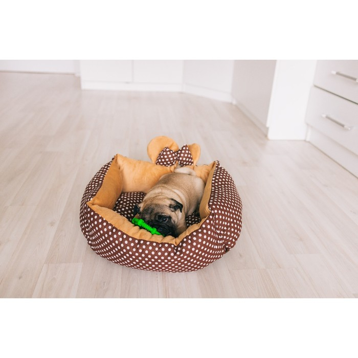 Лежанка "Милаш", 52 х 42 х 15, бязь, плюш, бежево-коричневая
