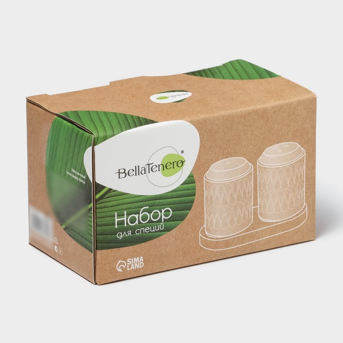 Набор фарфоровый для специй BellaTenero, 3 предмета: солонка 80 мл, перечница 80 мл, сахарница с ложкой 300 мл, цвет белый