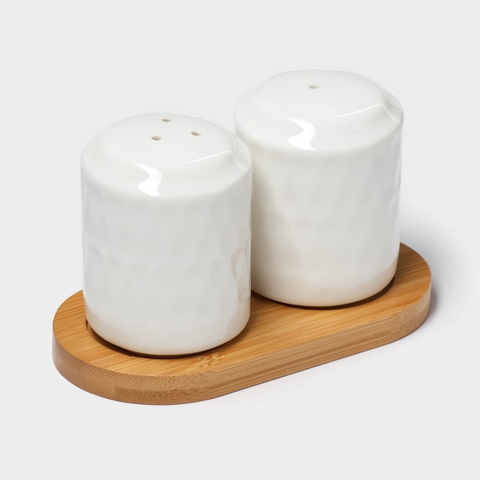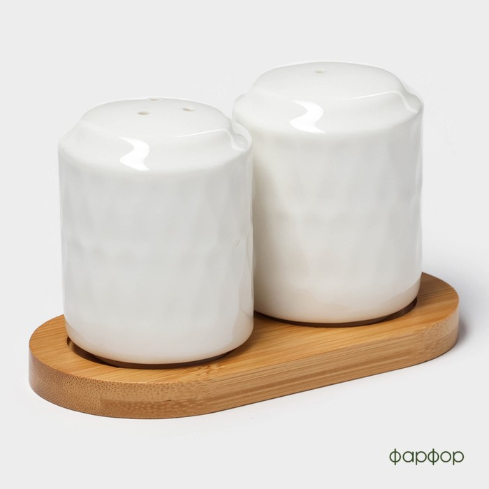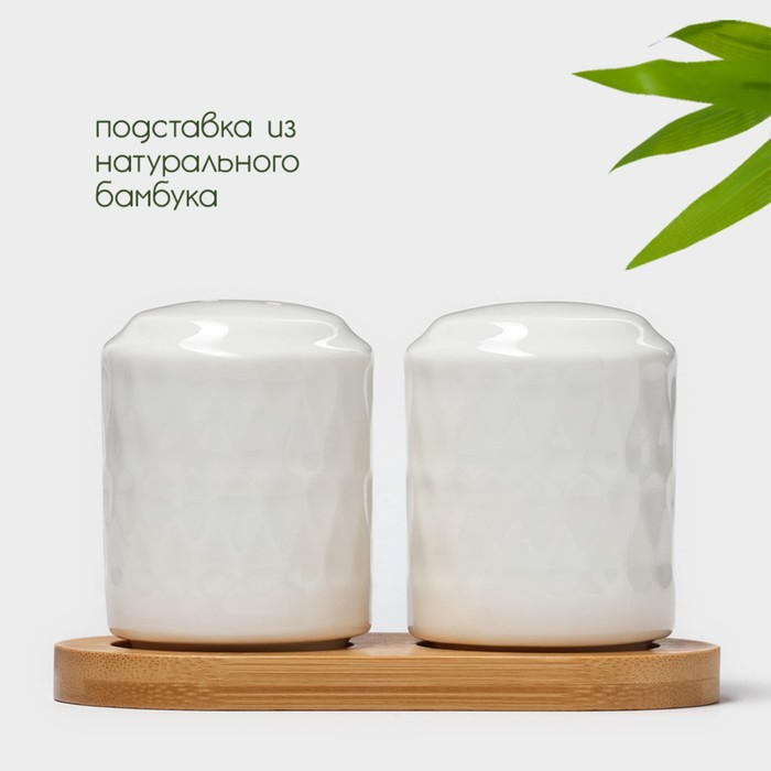 Набор фарфоровый для специй на деревянной подставке BellaTenero «Герда», 2 предмета: солонка 85 мл, перечница 85 мл, цвет белый