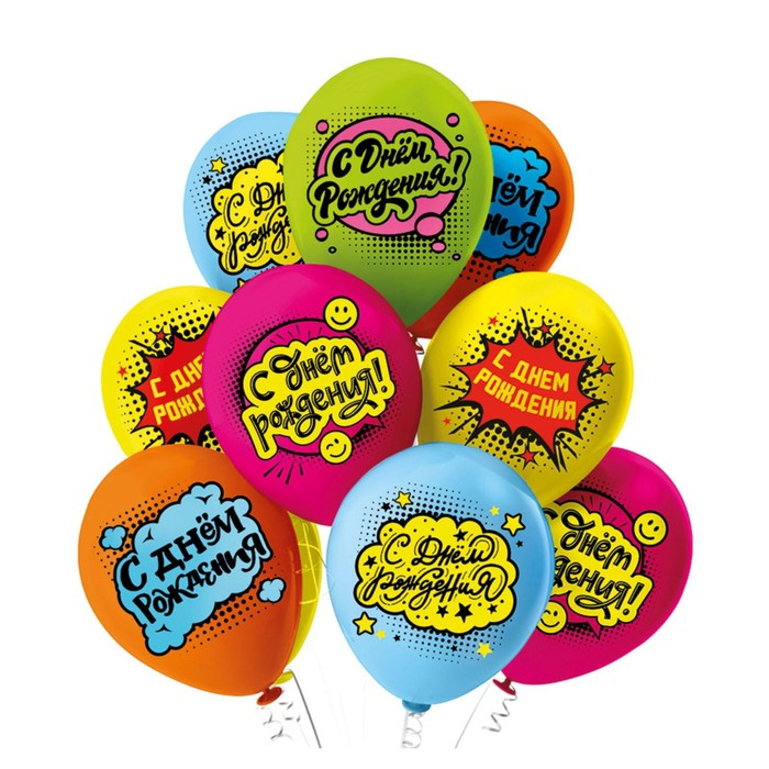 Шар латексный 12" «С ДР! Комиксы!», пастель, 1-сторонний, набор 25 шт., МИКС