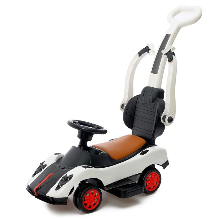 Толокар-каталка «Купе», с родительской ручкой, свет, звук, цвет белый