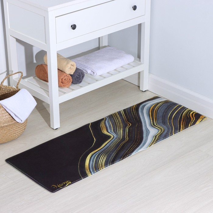 Коврик для ванной и туалета Доляна «Камень», 44×120 см, цвет чёрный