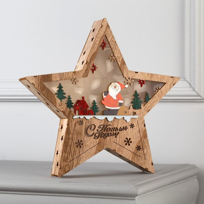 Светодиодная фигура «Дед Мороз в лесу» 30 × 30 × 5 см, дерево, батарейки АААх2 (не в комплекте), свечение тёплое белое