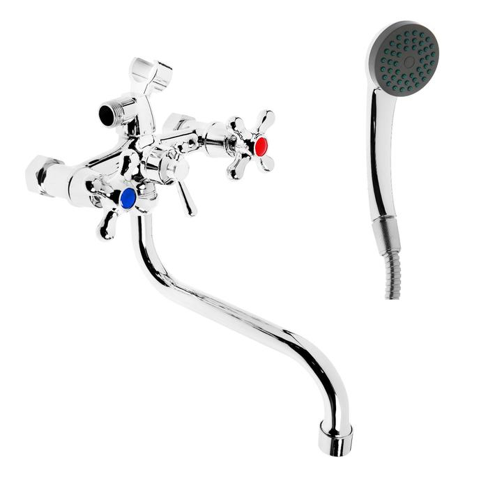 Смеситель для ванны ZEIN Z0155, кран-букса 1/2", душевая лейка и шланг, хром