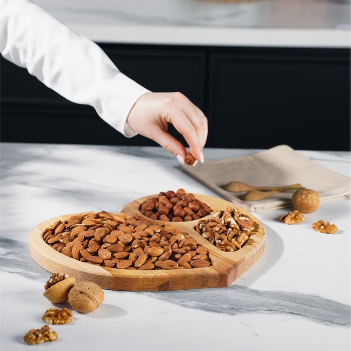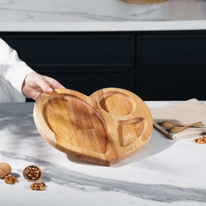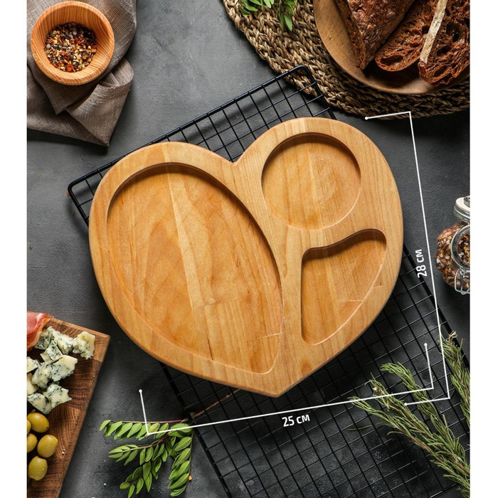 Менажница деревянная Доляна «Сердце», 25×25 см, 3 секции, берёза