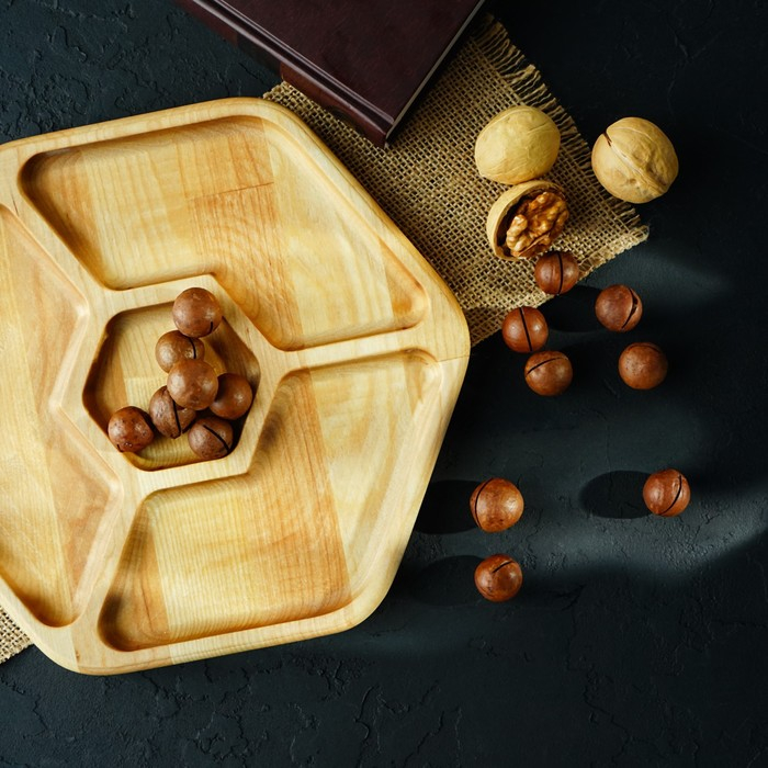 Никак не можете отучить себя от вредных перекусов? Изящная менажница из натурального дерева не даст вам пройти мимо орешков и сухофруктов. Изделие станет стильным и уютным элементом вашей кухни и незаменимым аксессуаром для сервировки стола.