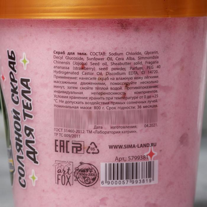 Скраб для тела соляной «Авокато», 800 г, аромат клубники, BEAUTY FOX