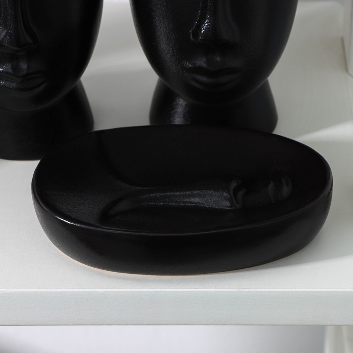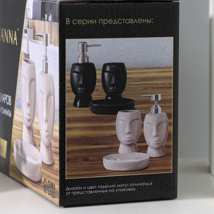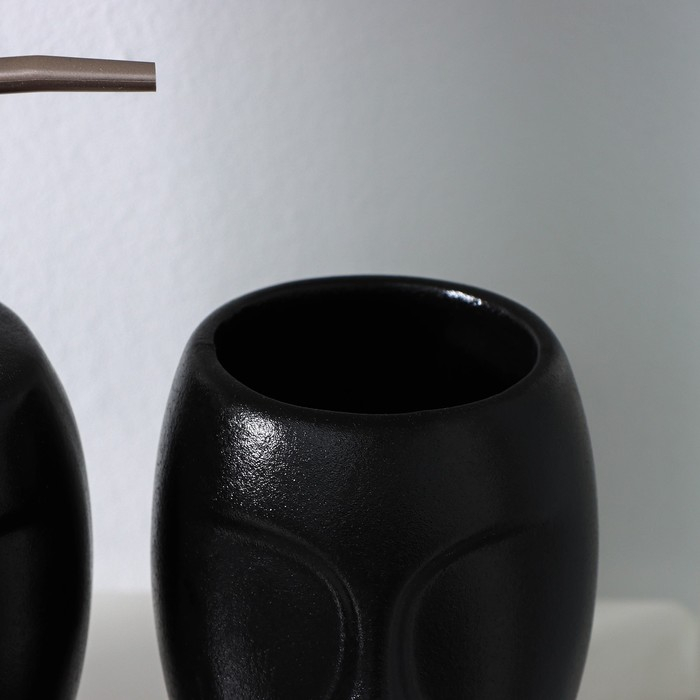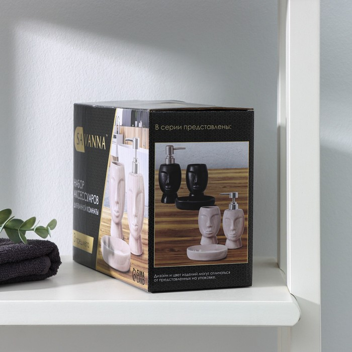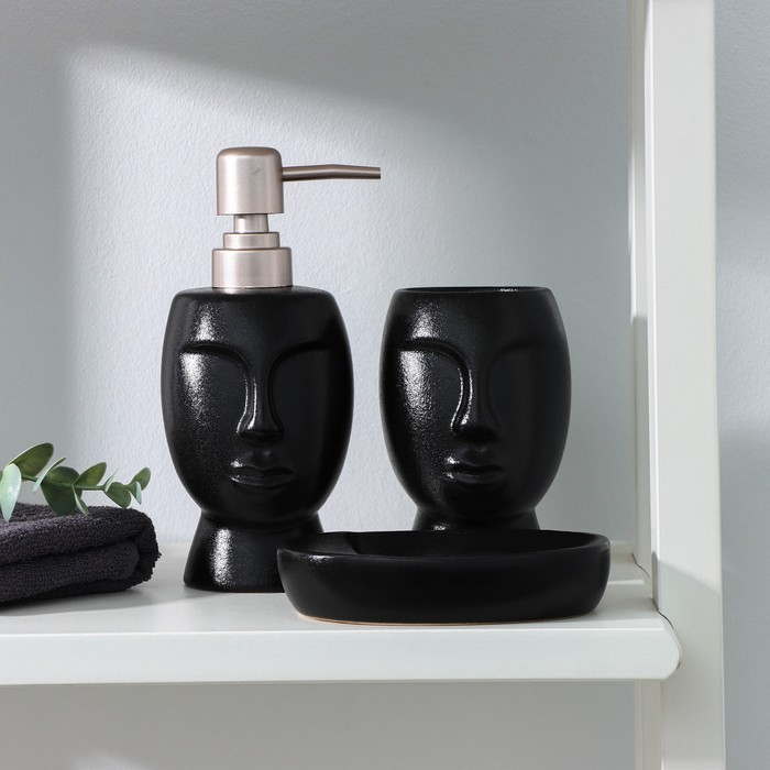 Набор аксессуаров для ванной комнаты SAVANNA «Вуду», 3 предмета (мыльница, дозатор для мыла, стакан), цвет чёрный
