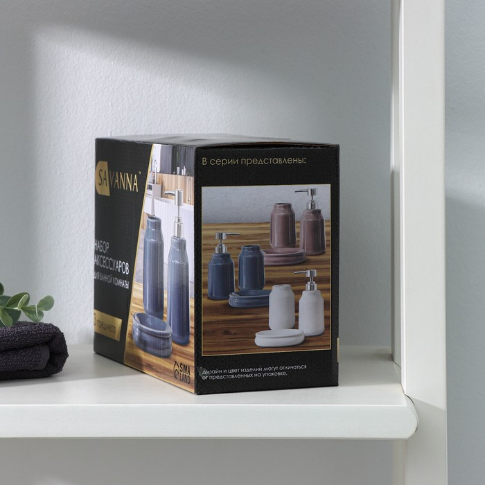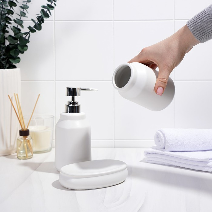 Набор аксессуаров для ванной комнаты SAVANNA «Глянец», 3 предмета (мыльница, дозатор для мыла, стакан), цвет белый