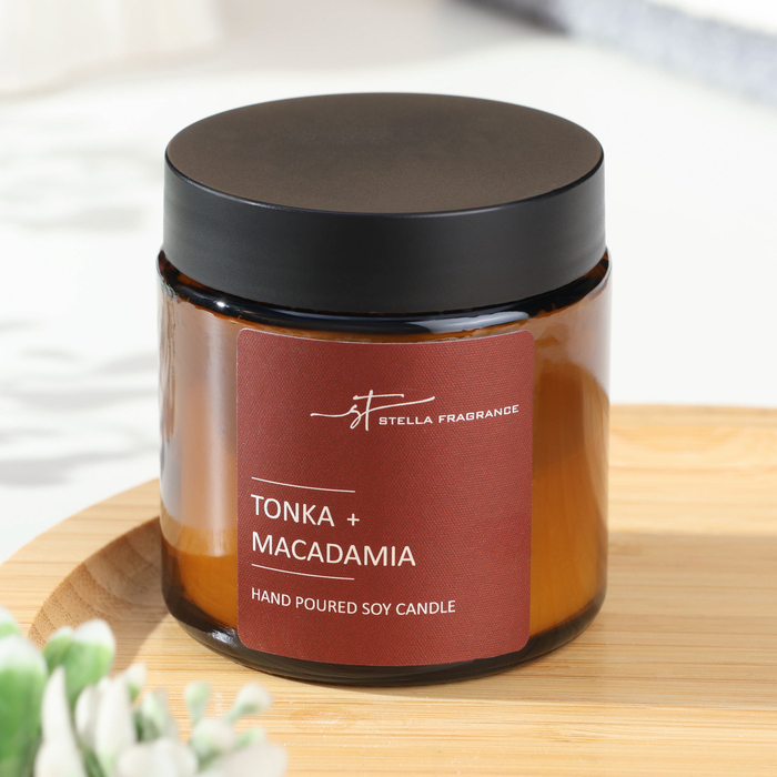 Свеча ароматическая в банке "TONKA MACADAMIA", соевый воск, 90 г, тонка и макадамия