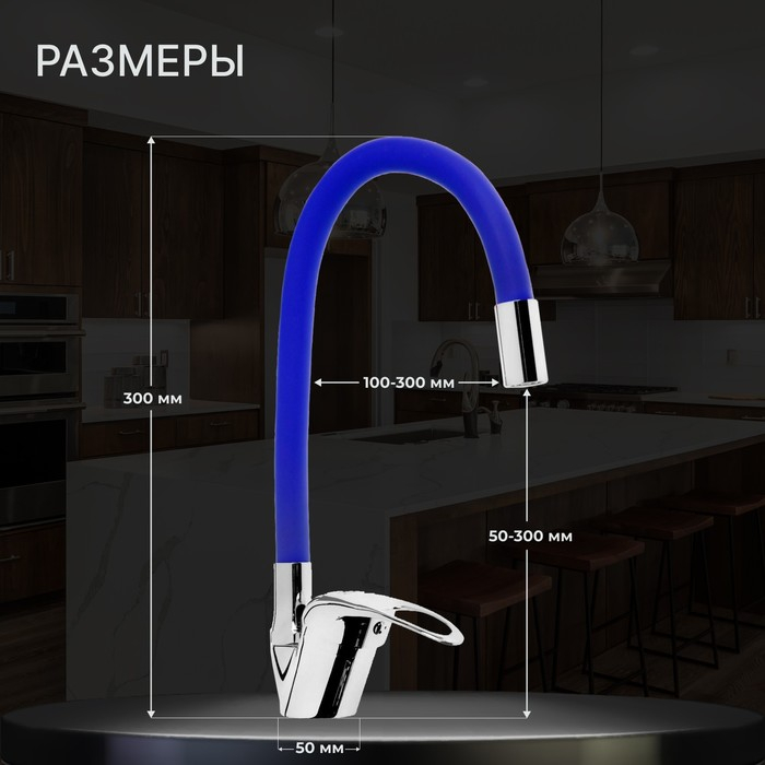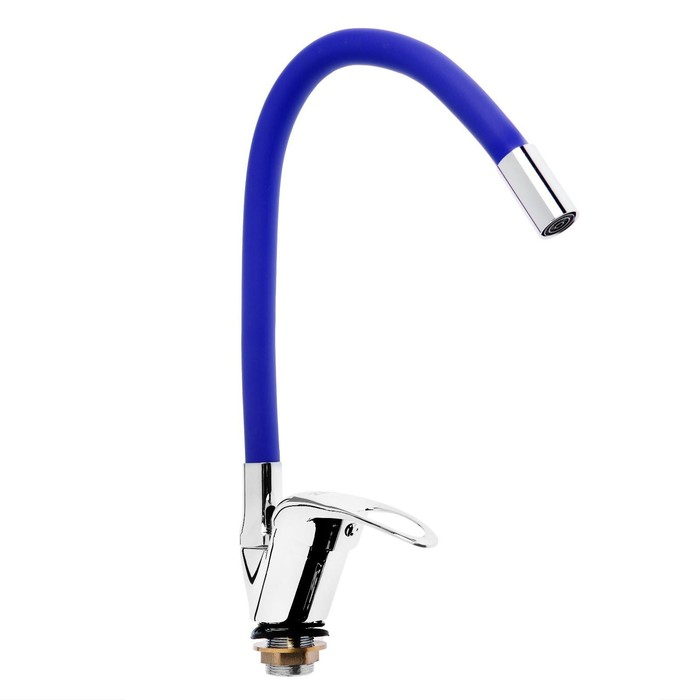 Смеситель для кухни ZEIN Z2112, однорычажный, гибкий излив, картридж 40 мм, синий/хром